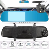 مشخصات دوربین آینه ای دو لنز این دوربین یک ابزار بسیار مناسب هستند که بسیار در روزمره به شما کمک می کنند و می توانید با اتصال آن به جای آینه خود ماشین هم زمان یک آینه و مانیتور داشته باشید و با استفاده از قابلیت های آن هم بتوانید ویدئو های تصادفات را ضبط کنید هم کار هایی مانند رانندگی و پارک را ساده تر سازید. دوربین این مدل از دوربین ثبت وقایع دارای دو دوربین است که شامل: دوربین جلو با کیفیت 1080 یا FHD با زاویه 170 درجه است که به صورت دایره می چرخد و می توانید زاویه آن را دستی تغییر دهید. دوربین عقب با کیفیت 720 یا HD با زاویه 120 درجه است که با پیچ به عقب متصل می شود و با سیم به دستگاه اصلی اتصال پیدا می کند. مانیتور سمت راست آینه یک مانیتور وجود دارد که 4 اینچ اندازه دارد و هنگامی که خاموش است حکم آینه را دارد و وقتی روشن می شود، با آن می توانید به صورت زنده از دوربین ها استفاده کنید و با تنظیمات اندازه آنها را تنظیم کنید. سوکت کارت حافظه در دستگاه جای رم نیز وجود دارد و اگر در آن یک کارت حافظه با حداکثر ظرفیت 32 گیگ قرار دهید، دستگاه ویدئو هارا در ان ذخیره می کند و به صورت خودکار هنگامی که پر شود فایل های قدیمی تر را پاک می کند.