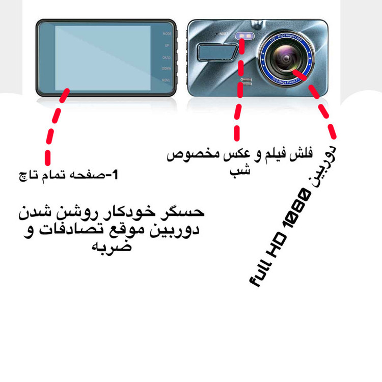 این دوربین جهت ضبط انواع اتفاقات حین رانندگی وبا کیفیت ضبط ۱۰۸۰P همچنین قابلیت اتصال رم ۳۲ گیگ، قابل اتصال دوربین دوم و نمایشگر ۳ اینچی میباشد دوربین ثبت وقایع خودرو مناسب تمام قابلیت نصب روی خودرو های سواری و عمومی،.اتوبوس و کامیون، برنامه JL، دارای G-Sensor، ال سی دی ۴ اینچ، دید وسیع ۱۷۰ درجه، دوربین عقب ۳ مگاپیکسل، Motion Detection، میکروفون داخلی، استریو داخلی، دید در شب، باتری داخلی ۳۰۰ میلی آمپر ساعت.دارای سیستم LOOPRECORDER میباشد که هنگام پر شدن مموری کارت دوباره فایلهای گزشته را پاک کرده و همیشه در حال ضبظ کردن میباشد.