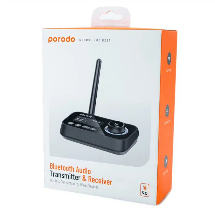 فرستنده صدا بلوتوث مدل پرودو PD-3IN1RTA-BK با بلوتوث ورژن 5.0 و برد حدود 10 مترتولید شده است و میتواند همزمان به دو هدفون یا اسپیکر بلوتوثی وصل شود. و از طریق پورت TAPC روشن میشود. انتقال دهنده صدای پرودو می تواند ورودیهای صوتی آنالوگ و دیجیتال را از دستگاههای مختلف مانند تلویزیون، ویدئو، رسیور، لپتاپ، کنسول بازی و...دریافت کند و به صورت بلوتوث به طور همزمان به دو گیرنده بلوتوثی (هدفون یا اسپیکر بلوتوثی) ارسال کند. هنگامی که نمیخواهید صدای دستگاه شما پخش شود و فقط خودتان گوش دهید یا صدای آن کودک را بیدار نکند می توانید دستگاه را از طریق جک 3.5میلیمتری، درگاه کواکسیال و یا کابل اپتیکال(فیبر نوری) به این فرستنده وصل کنید و هدفون را با بلوتوث به پرودو متصل کنید و بدون نگرانی به صدای دستگاه یا موسیقی گوش دهید.