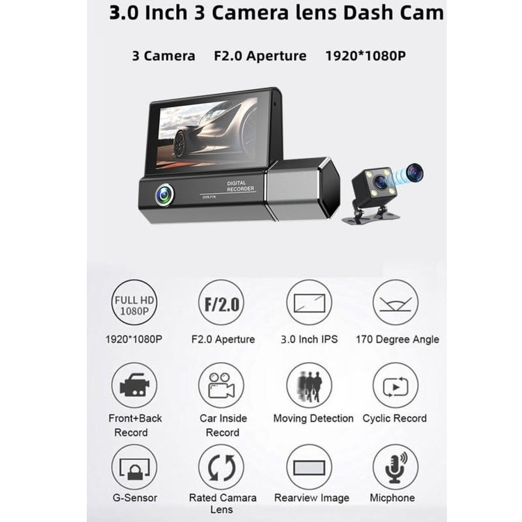 دوربینهای سه لنزه خودرو مدل VC۳۳ دارای ویژگیهای بسیاری هستند و همانند یک همیار حرفهای در کنار شما در تمام طول مسیر هستند و به رانندگی ایمن شما کمک شایانی میکنند، حال در ادامه قصد داریم این ویژگیها را بررسی کنیم که به شرح ذیل هستند: قابلیت تنظیم: این مدل دوربین دارای سه لنز بوده و در هر زمان که دلخواهتان بود میتوانید لنز سوم را نیز روی دوربین نصب کنید، این دوربین را میتوان در جهت بالا و یا پایین تنظیم کرد. مقاوم بودن دستگاه: در ساخت این محصول از متریالهای با کیفیت استفاده شده که آن را در برابری مواردی نظیر ضربههای جزئی مقاوم میکند. دارای سنسور خروج از خط کشی: این نوع سنسور که در دوربین ۳ لنزه خودرو مدل CO۱ قرار دارد ایمنی بیشتر را برای راننده تامین میکند به این شکل که اگر راننده در هنگام رانندگی دچار حواس پرتی و یا خواب آلودگی شد، به راننده اخطار داده و جان او و همسفرانش را نجات خواهد داد. پشتیبانی از حافظه: این مدل دوربین به گونهای طراحی شده که میتوان داخل آن تا ۳۲ گیگ حافظه قرار داد. باتری داخلی: این مدل آینه دارای محفظه باتری است و در زمان اضطراری از باتری داخلی تغذیه میکند. مجهز به G-sensor: دوربین ثبت وقایع خودرو سه دوربین CO۱ مجهز به سنسور ضربه است و در زمانی که خدایی نکرده تصادف کنید سنسور ضربه فعال شده و به صورت اتوماتیک فیلم برداری از صحنه را شروع میکند. مجهز به لوپ رکوردینگ: این تکنولوژی باعث شده تا در صورت پر شدن حافظه، محتوای قدیمی تر به صورت خودکار پاک شود.