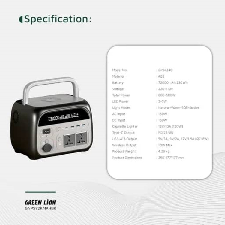 پاور استیشن گرین لاین مدل 72000میلی آمپر 600 وات در حد نو