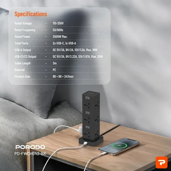 چندراهی برق 12 خانه پرودو مدل FWCH042، با ۱۲ پریز AC و پشتیبانی از USB-C PD و Quick Charge 3.0 ، یک راهکار قدرتمند و پرظرفیت برای تأمین برق در منزل یا محیط کار است. این محصول با داشتن ۱۲ پریز برق، امکان اتصال همزمان چندین دستگاه را فراهم میکند و گزینهای ایدهآل برای استفادههای خانگی و اداری به شمار میرود.دارای ۲ پورت USB-C و ۱ پورت USB-A با پشتیبانی از فناوری شارژ سریع Quick Charge 3.0 و Power Delivery است. پورتهای USB-C میتوانند تا ۲۰ وات و پورت USB-A تا ۱۸ وات توان خروجی داشته باشند تا دستگاههای شما را با سرعت بالا و کارایی مناسب شارژ کنند.بدنه این چندراهی از جنس پلیکربنات (PC) ساخته شده و در طراحی آن ایمنی و دوام در نظر گرفته شده است. همچنین دارای محافظ داخلی در برابر ولتاژ بیش از حد و اتصال کوتاه است.کابل برق ۳ متری آن نیز آزادی عمل و دسترسی راحتتر به پریز برق را در هر محیطی فراهم میسازد.