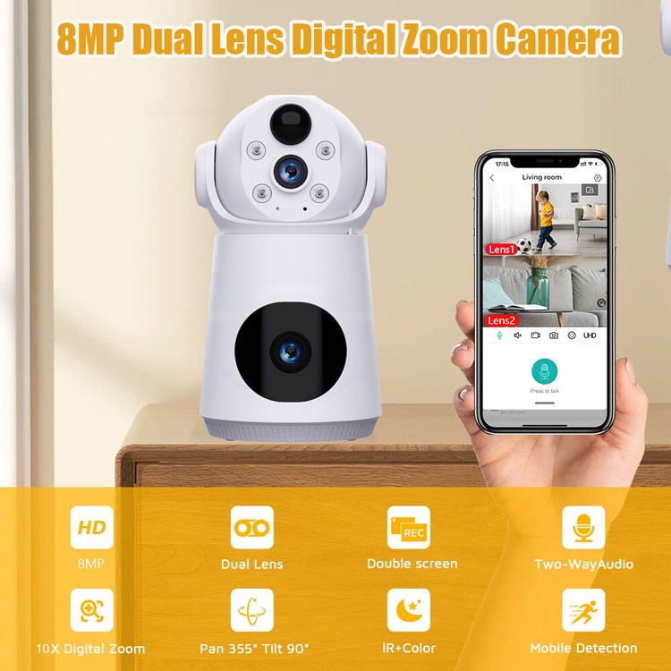 طراحی لنز دوگانه، نظارت استریوی همه جانبه: طراحی منحصر به فرد با لنزهای دوگانه، چشمانداز وسیعتر و جامعتری را برای نظارت فراهم میکند. دو لنز میتوانند زوایای مختلف تصویر را به طور همزمان ضبط کنند، زاویه دید مرده نظارت را تا حد زیادی کاهش دهند و واقعاً به طیف کاملی از نظارت سهبعدی دست یابند. چه هر گوشه اتاق باشد و چه حرکت در، میتوانید یک نمای پانوراما داشته باشید و طیف کاملی از محافظت را برای امنیت خانواده فراهم کنید.