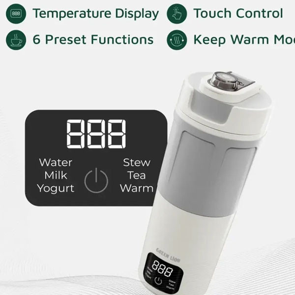 کتری برقی گرین لاین Green Lion Kettle & Go ، دارای ظرفیت جوشاندن آب تنها 600 میلیلیتر می باشد. این کتری از جنس PP محکم و استیل ضد زنگ 304 است و مطمئناً مدت زیادی دوام خواهد داشت. برای ورودی برق، میتوان از پورت Type-C یا 3 پین DC استفاده کرد. عملکرد چند منظوره آن را برای نیازهای گرمایشی مختلف تقویت میکند. با قدرت ۳۰۰ وات و ولتاژ ۲۲۰ ولت~، آب را در حدود ۷-۸ دقیقه به جوش میآورد. طول سیم رابط 65 سانتیمتر با دوشاخه UK در یک سر خواهد بود. این کتری Green lion دارای نمایشگر دما و قابلیت کنترل لمسی برای سهولت کار است. حالت گرم نگه داشتن و خاموش شدن خودکار به ایمنی شما میافزاید. ویژگیها کتری شامل محافظت در برابر جوش آمدن آب و دهانه بدون چکه برای اطمینان از کارایی و تمیزی بالای کتری است. اطلاعات درجشده در شرح کالا از جمله نام مدل ، طرح یا تعداد و... با عنوان فارسی یا مشخصات فنی مغایرت دارد. لطفاً تمامی بخشها را بررسی و اصلاح کنید.