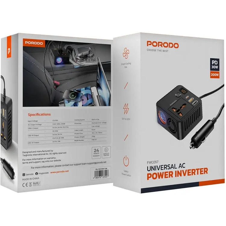 اینورتر و مبدل برق خودرو پرودو Porodo Universal AC Power Inverter یک راهحل هوشمند برای تأمین برق در سفر و جاده است. این دستگاه برق 12 ولت خودرو را به برق AC تبدیل میکند و به شما امکان میدهد لوازم برقی خانگی و گجتهای الکترونیکی خود را بهراحتی در خودرو استفاده کنید. با وجود پورت AC، درگاههای USB و Type-C، این مبدل قابلیت شارژ و تأمین انرژی انواع دستگاهها شامل لپتاپ، گوشی موبایل، تبلت، دوربین، پاوربانک، اسپیکر و حتی برخی لوازم برقی کوچک را دارد. توان خروجی قدرتمند آن تضمین میکند که شارژ یا استفاده از وسایل بدون افت کیفیت و بهطور ایمن انجام شود. پرودو در طراحی این محصول از سیستمهای حفاظتی پیشرفته استفاده کرده است؛ از جمله محافظت در برابر ولتاژ بیش از حد، اتصال کوتاه، داغ شدن و بار اضافی. این ویژگیها باعث میشوند دستگاه و وسایل متصلشده همیشه در امنیت کامل باشند. طراحی جمعوجور و سبک اینورتر Porodo باعث میشود بهراحتی در خودرو قابل حمل باشد و برای سفرهای طولانی، کمپینگ، جادهگردی و استفاده روزمره یک انتخاب ایدهآل محسوب شود.