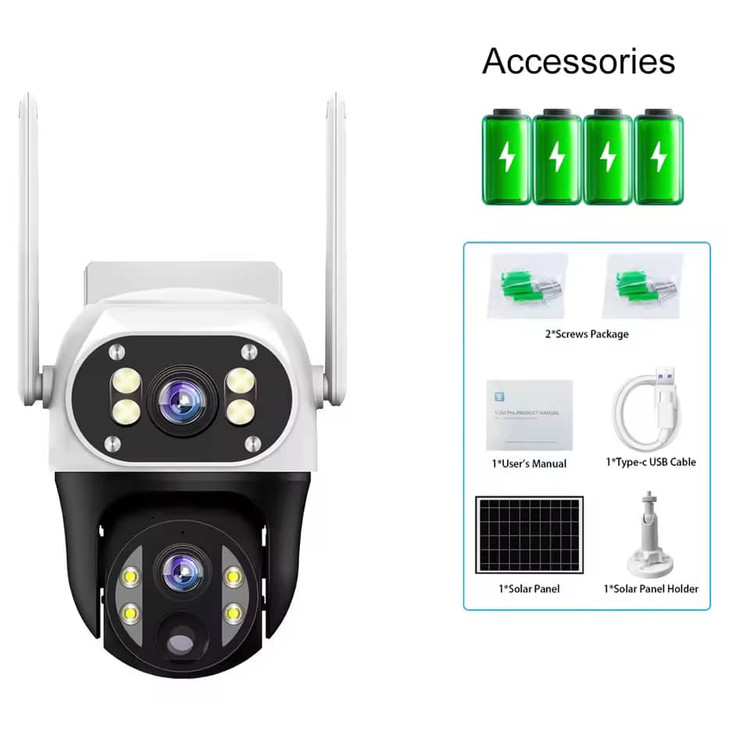 دوربین خورشیدی VS11-G-H سیمکارتخور برای امنیتی بیوقفه و بیدردسر می باشد. عملکرد تماموقت با انرژی خورشیدی بدون نیاز به برق یا سیمکشی، این دوربین با پنل خورشیدی خودکار شارژ میشود و هزینههای شما را کاهش میدهد در هوای ابری 3 روز شارژ نگهداری میکند. فقط یک سیمکارت کافی است برای دیدن تصاویر روی تلفن همراه در هر نقطه با قرار دادن یک سیمکارت داخل دوربین، میتوانید از هر نقطه به تصاویر زنده دسترسی داشته باشید و محیط خود را در نظر داشته باشید. با نصب یک مموری کارت به راحتی میتوانید فیلم ها را تا یک ماه و بیشتر ضبط کنید. مقاومت بالا با استاندارد IP66 را داراست. این دوربین در برابر باران، گردوغبار و شرایط جوی سخت مقاوم است، بنابراین برای فضاهای باز ایدهآل است. دو لنز حرفهای دارد که لنز ثابت با قابلیت تنظیم دستی برای پوشش دقیق نقاط خاص می باشد ولنز چرخشی 360 درجه که امکان کنترل کامل و نظارت بر تمام زوایا را فراهم میکند. دید در شب پیشرفته که حتی در تاریکی مطلق، تصاویر واضح و شفاف را ثبت میکند و همچنین قابلیت روشن نمودن چراغ هنگام مشاهده حرکت برای ضبط تصاویر رنگی در شب را دارا میباشد. کنترل و مشاهده از راه دور با اپلیکیشن موبایل v380 proمیتوانید به راحتی تصاویر را مشاهده کنید، دوربین را بچرخانید و هشدارهای حرکتی دریافت کنید. بهترین انتخاب برای باغها، ویلاها، مزارع و حتی مکانهای دورافتاده بدون نیاز به برق و کابل کشی می باشد تنها کافی است سیم کارت و کارت حافظه را در دستگاه قرار داده و پنل را در محلی که تابش آفتاب وجود دارد نصب کنید.