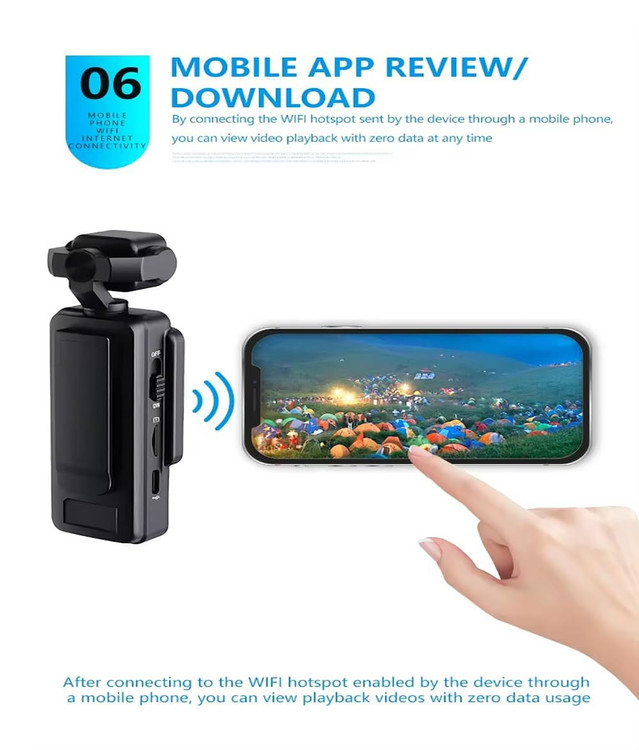 دوربین تولید محتوا و ضبط صدا مدل DV01 فیلمبرداری با کیفیت 1080 و قابلیت SPORTS ANTI SHAKE میباشد.این محصول دارای WIFI جهت انتقال اطلاعات از جمله ویس و ویدیو است.این محصول دارای ONE CLICK RECORDING VIDEO جهت کارایی آسان است.توسط اپلیکیشن مخصوص دوربین که قابل نصب بر روی انواع تلفن هوشمند(اندروی و ای او اس) میباشد و میتوانید تصاویر را به صورت انلاین مشاهده کنید.همچنین دوربی مموری کارت از حجم 8 گیگابایت الی 64 گیگابایت را ساپورت میکند.با یک مرتبه شارژ 2 الی 3 ساعت فیلمبرداری یا 20 ساعت رکورد صدا انجام میدهد.کابل تایپ سی روی محصول موجود است.