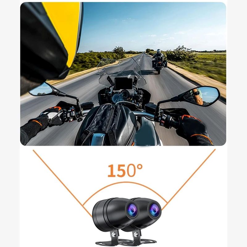 دوربین موتورسیکلت 1080P جلو و عقب با دید در شب و ضدآب IP67، همه مسیر شما را با کیفیت بالا ثبت میکند، حتی در شب و شرایط بارانی! دارای صفحه نمایش 3 اینچ IPS، زاویه دید 150 درجه، GPS حرفهای برای ثبت مسیر و سرعت، ضبط خودکار با روشن شدن موتور، ضبط حلقهای، کنترل از راه دور و سازگار با کارت حافظه تا 128 گیگابایت. مناسب برای موتورسیکلت، ATV، UTV و موتورسیکلت برقی، امنیت بیشتر و ثبت لحظات هیجانانگیز مسیر شما را تضمین میکند.قابلیت اتصال به موبایل از طریق اپلیکیشن مخصوص دوربین تا فاصله 20 متری را دارد که میتوانید تنظیمات دستگاه و فیلمهای ذخیره شده را بدون نیاز بیرون اوردن مموری کارت بازبینی کنید.