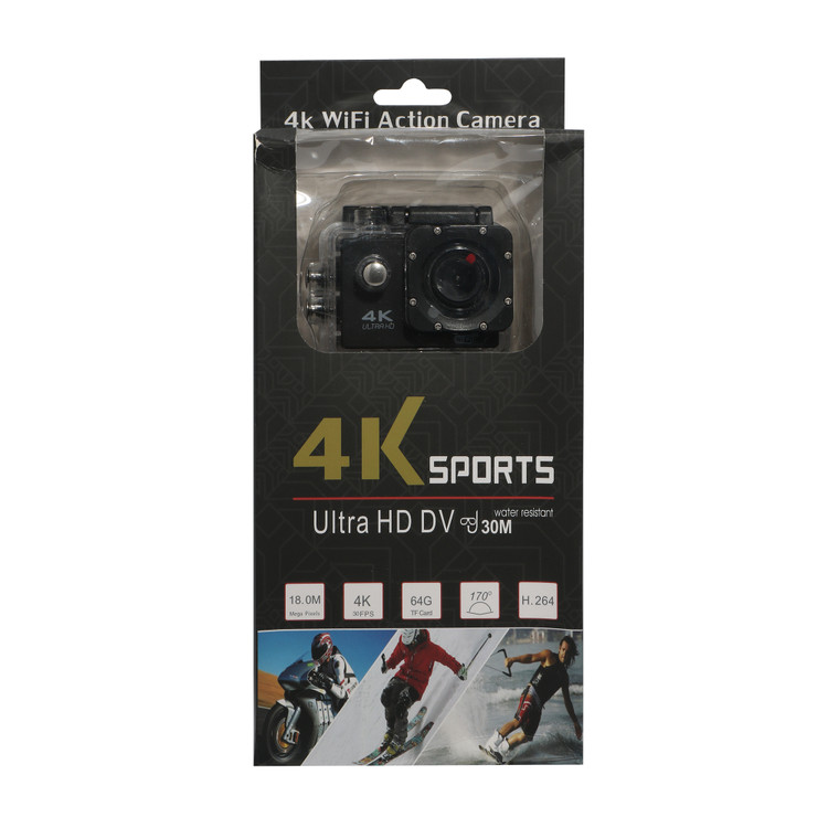 دوربین مدل 4K ULTRA G80E ساخت شرکت Action می باشد و قابلیت فیلمبرداری 4K به صورت 30 فریم برثانیه را دارد همچنین 2.7K را 30 فریم می گیرد و نیز Full HD را به صورت 30fpsمی گیرد درحالت HD نیز 30fpsو 60fps و 120fps وفیلمبرداری می کند. این دوربین قابلیت تایم لپس شدن،ضدآب تا 30 متر، عکاسی 18مگاپیکسل،دارای LCD پشت دوربین می باشد. لنز این دوربین 170 درجه بوده و با باطری تا یک ساعت ونیم فیلمبرداری می کند همچنین یکی از قابلیتهای خوب این دوربین کار کرد بدون باطری می باشد که فقط با اتصال دوربین به یک پاوربانک یا شارژر برق موبایل می تواند کارکند.