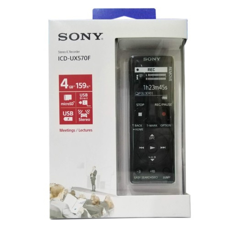 توجه داشته باشید محصول مقداری خش روی صفحه نمایشش هست چون داخل ویترین مغازه بوده .کاملا نو هست و استفاده نشده . عکس خود دتگاه رو گزاشتم .دستگاه های ضبط صدای سونی همیشه با استقال خوب در بازارهمراه بوده است. بی شک سونی قدرتمند ترین شرکت در بازار رکوردرها می باشد که در میان همه کاربران از جمله دانشجویان و اساتید ،خبرنگاران ، شرکت ها و ارگان های دولتی و موسسات خصوصی صدا و سیما و تمام کسانی که به دنبال ضبط صدای حرفه ای و قدرتمند با امکانات بالا می باشند از محبوبیت بالایی برخوردار است .رکوردرهای سونی دارای ویژگی های بارزی مانند ضبط خودکار (VOR)، نشانه گذاری پخش (T-MARK)، تکرار پخش (A-B Repeat)، جستجوی سریع (Easy Search) و پوشه بندی اطلاعات می باشند. ضبط صدای جدید سونی مدل ICD-UX570F با استفاده از 4 گیگابایت حافظه داخلی ، می تواند تا 59 ساعت با کیفیت MP3 128kbps (STEREO) ضبط کند. به علاوه ، می توانید با استفاده از کارتهای حافظه متناسب با رکوردر خود حافظه دستگاهتان را افزایش دهید .رکوردر ICD-UX570F کارت حافظه MicroSDHC را تا حداکثر 32 گیگابایت پشتیبانی میکند.انتقال فایل ها به رایانه بسیار سریع و راحت انجام می شود. برای اتصال فوری کافیست فقط قسمت USB (USB سرخود) رکوردر ICD-UX570F را مستقیماً به پورت USB کامپیوتر خود وصل کنید. برای انتقال اطلاعات به کابل USB احتیاجی نیست.ضبط صدای سونی مدل UX570 بسیا رسبک و نازک است ،این امر باعث میشود که این ضبط صدا همراه همیشگی شما باشد. صفحه نمایش ICD-UX570F نسبت به اکثر مدل ها بزرگتر بوده که این موضوع بازبینی و مدیریت فایل های ضبط شده را برای شما راحتتر میکند. در ضبط صدای UX570F فرکانس هایی که بر اثر حساسیت میکروفن از دست رفته اند، با استفاده از تنظیمات خودکار،فرکانس ها بهبود یافته که با وضوح و کیفیت بالایی ذخیره میشوند.شما میتوانید با استفاده از قابلیت Time Jump بصورت پرشی( 10٪ از کل زمان پخش یک ضبط )بخش مهمی را که در جستجوی آن هستید براحتی پیدا کنید. به لطف میکروفن-S میتوانید منابع صوتی ضعیف مانند صدای پرندگانی که در فاصله دور هستند را با کیفیت بالا و بطور طبیعی و واضح ضبط کنید.